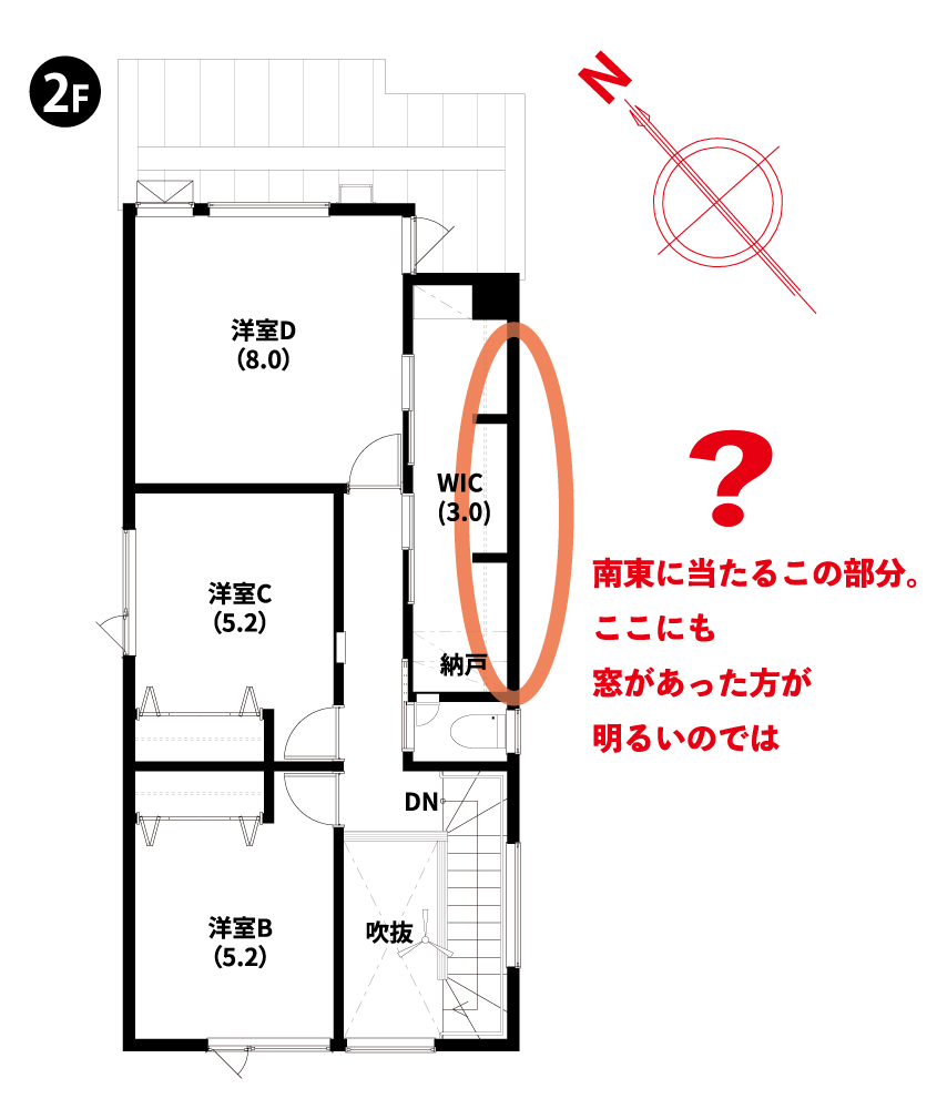なぜ、2階の南東側に窓を作らなかったのでしょう…
