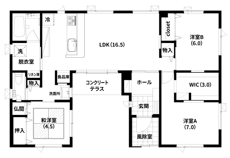 玄関の見た目もトイレのドアがなくすっきりです。