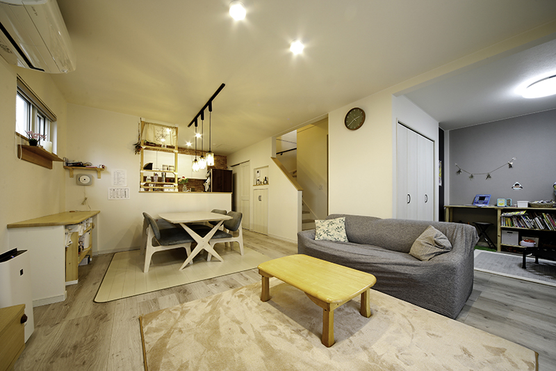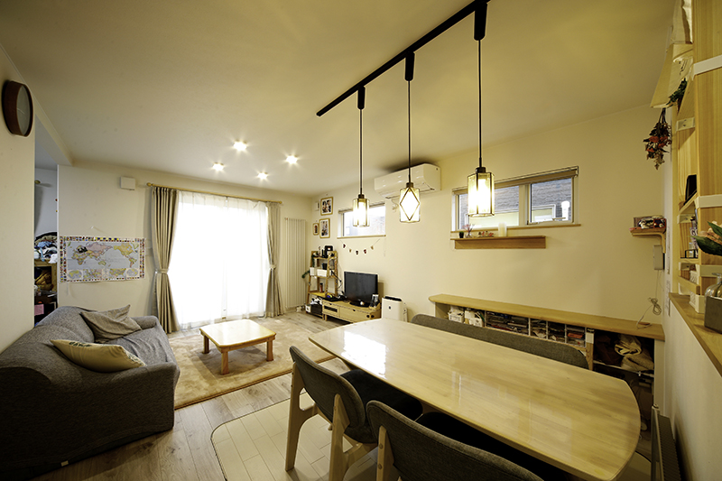 ほかにも、リビングとキッチンの照明を“ダウンライト風”にすることで、コストを大幅に抑えることもできました。