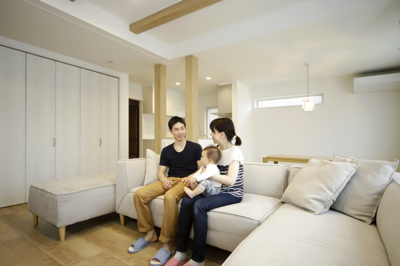 お子様を挟んでお二人の笑顔が弾けた瞬間でした。お子様の声が元気いっぱい、のびのびと響くお住まい。