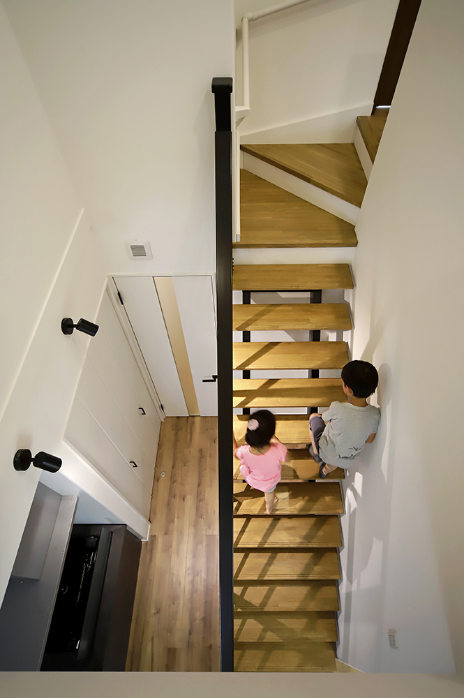 さらにI様のお宅では、室内階段の蹴上(1段の高さ)を低くし、段数を増やすという工夫も。
