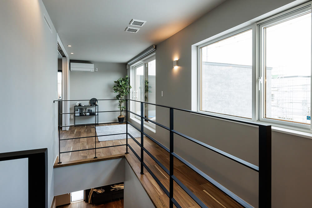 2階にもうけられたバルコニーは、自然光と心地よい風を取り込みながら、周囲の景色を楽しめる開放的なスペース。リフレッシュやちょっとしたアウトドア気分を味わえる、特別なひとときを提供します。