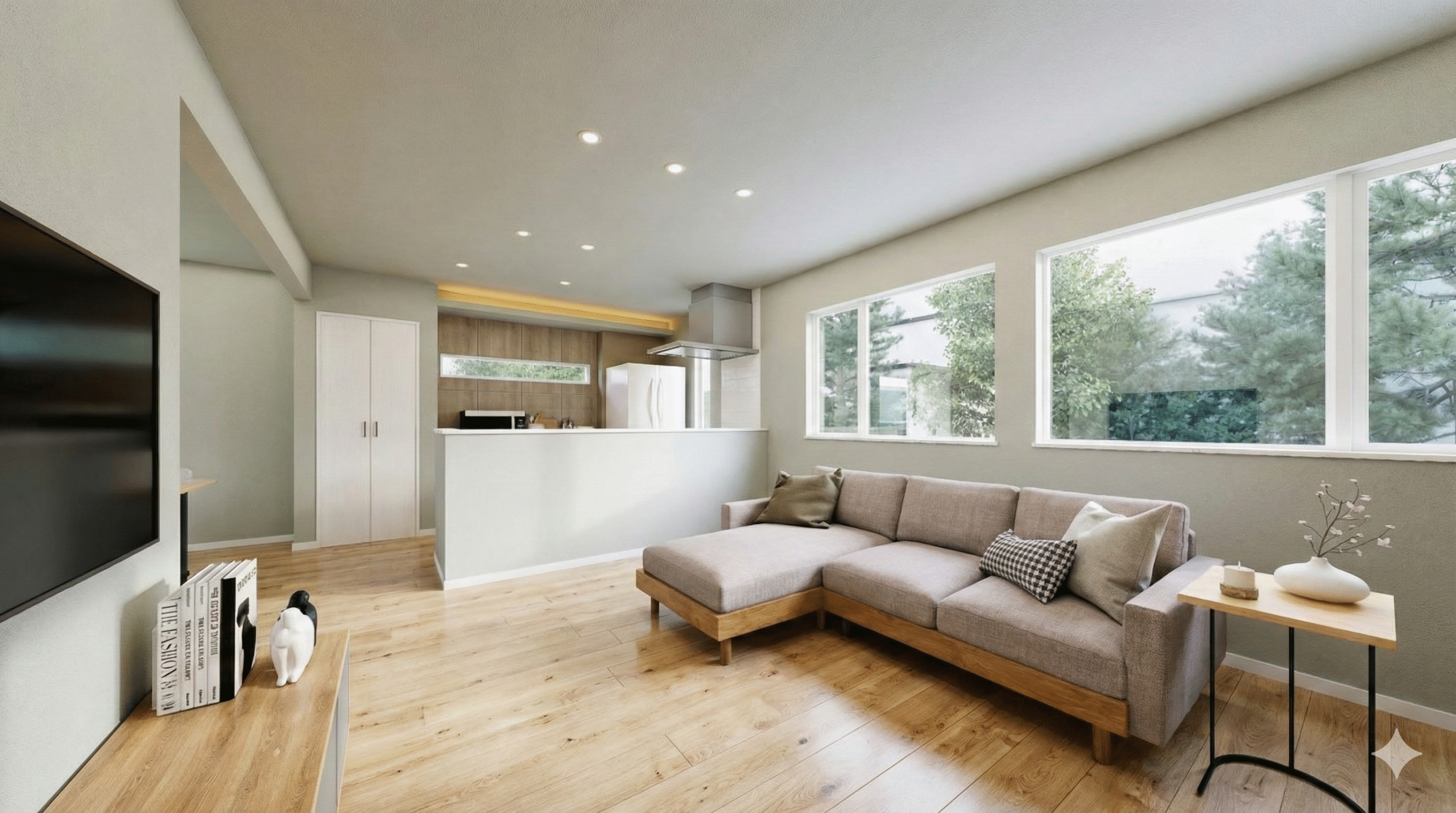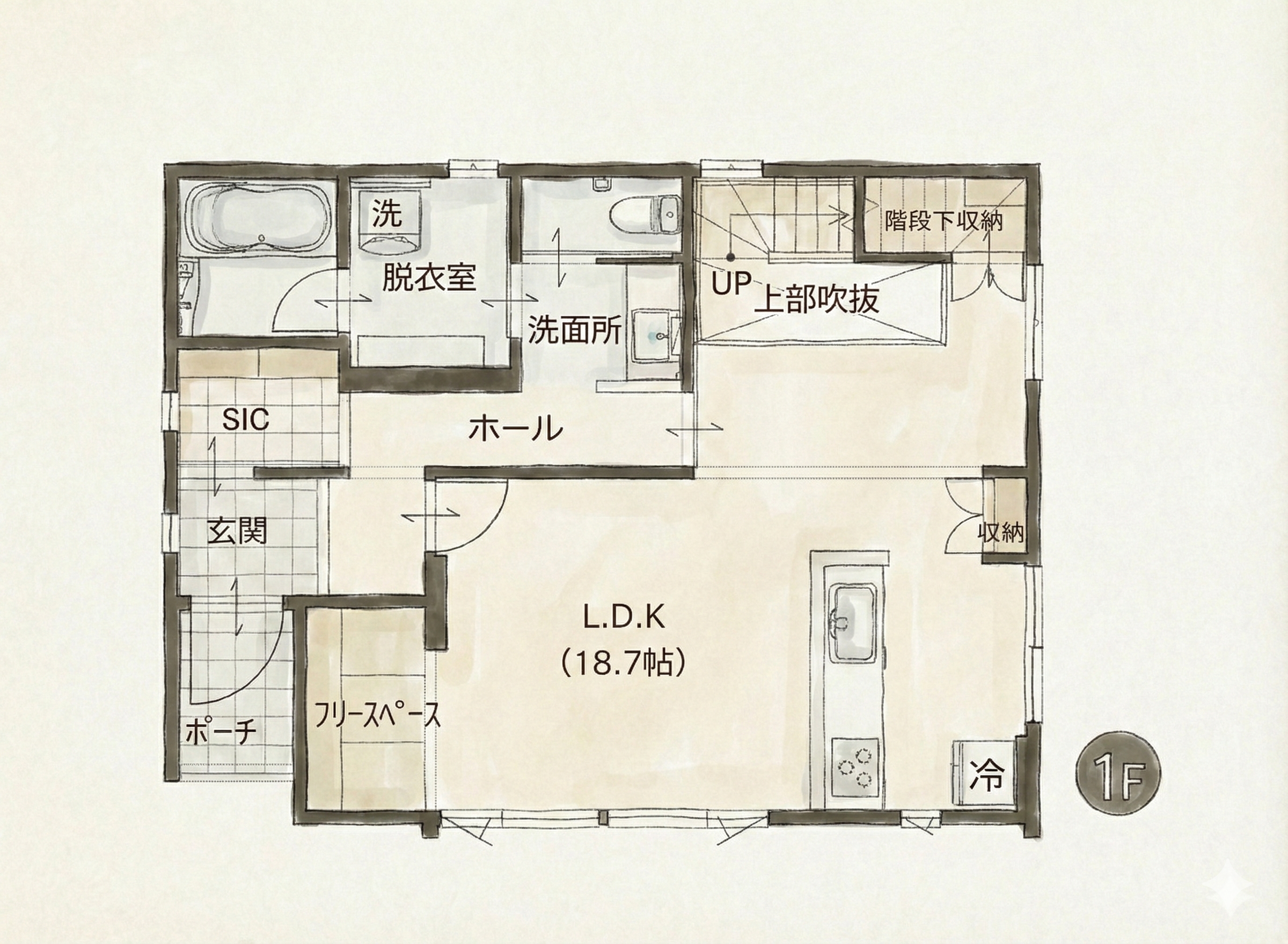 回遊動線×洗面脱衣別で家事をスムーズに!全館空調で快適な暮らしを実現。