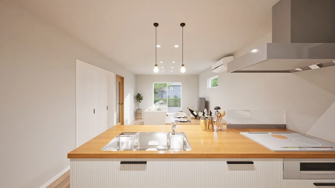 【木の温もり感じる木天板キッチン】書斎&2か所のWIC完備で快適な暮らしを。