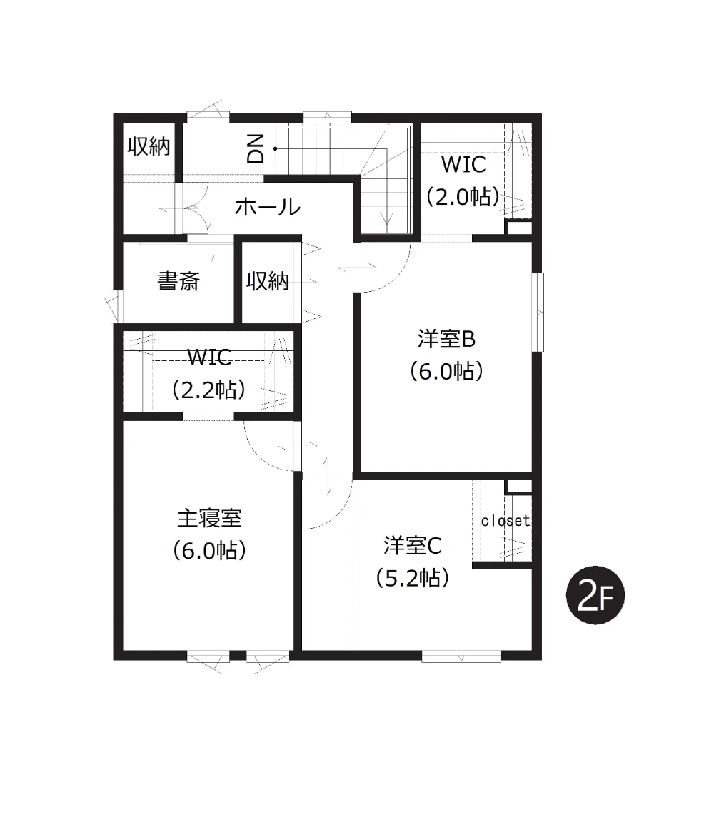 ■主寝室と洋室にそれぞれウォークインクローゼットを配置。