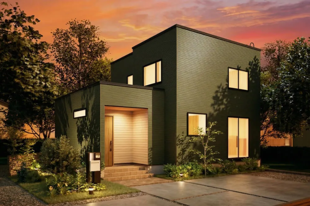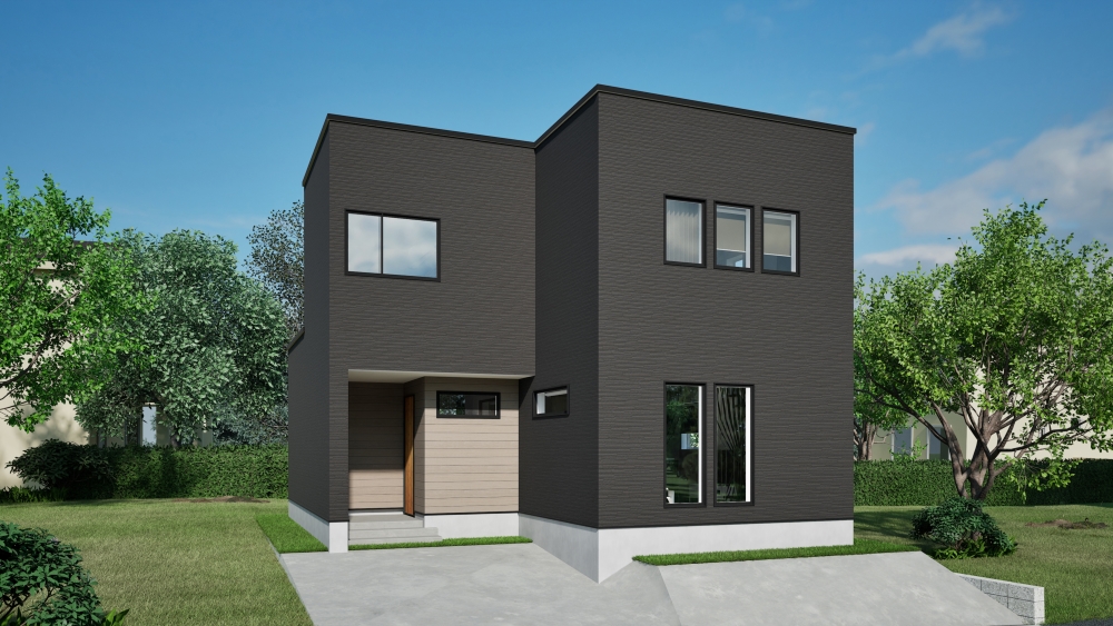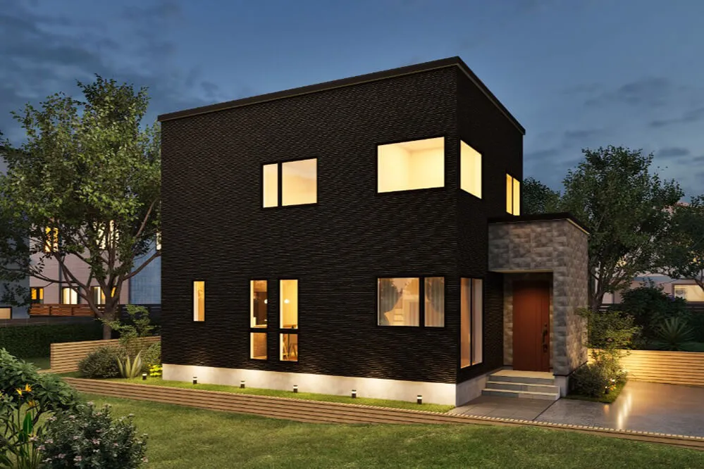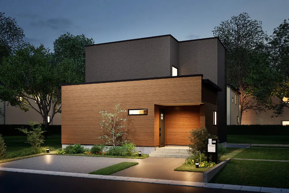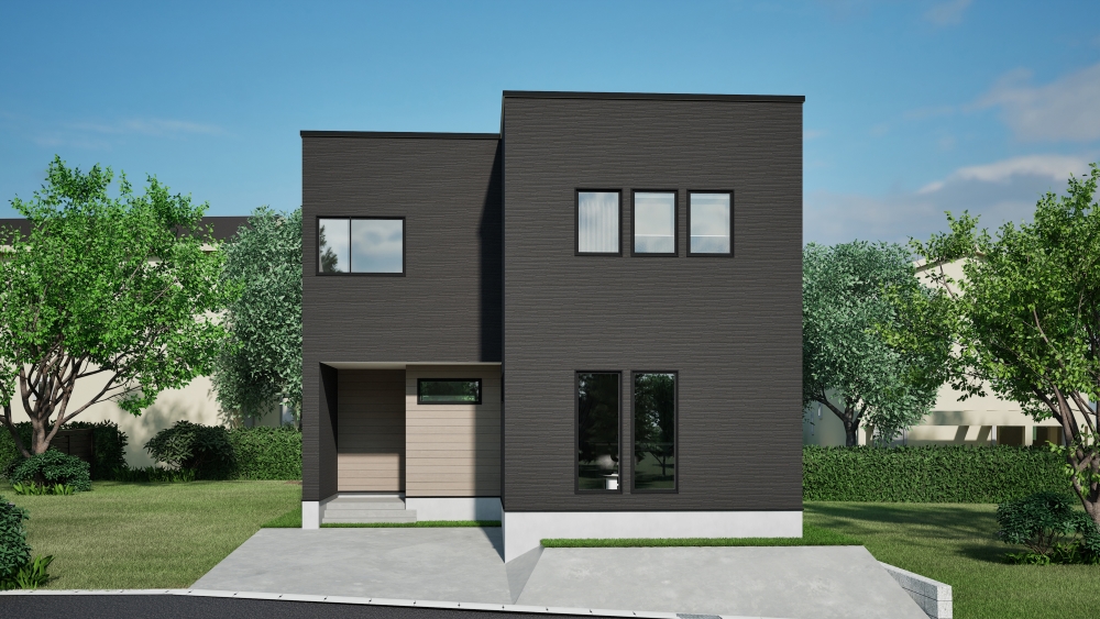 外観はブラックを基調に、陰影を際立たせる立体的なデザイン。室内はグレーを巧みに取り入れたモダンなインテリア。大人の感性を満たす統一感ある空間で、外観から内観まで一貫した美意識が感じられる住まいです。