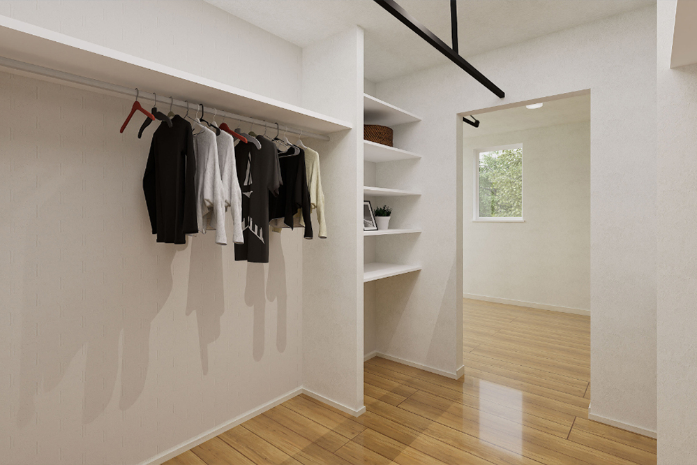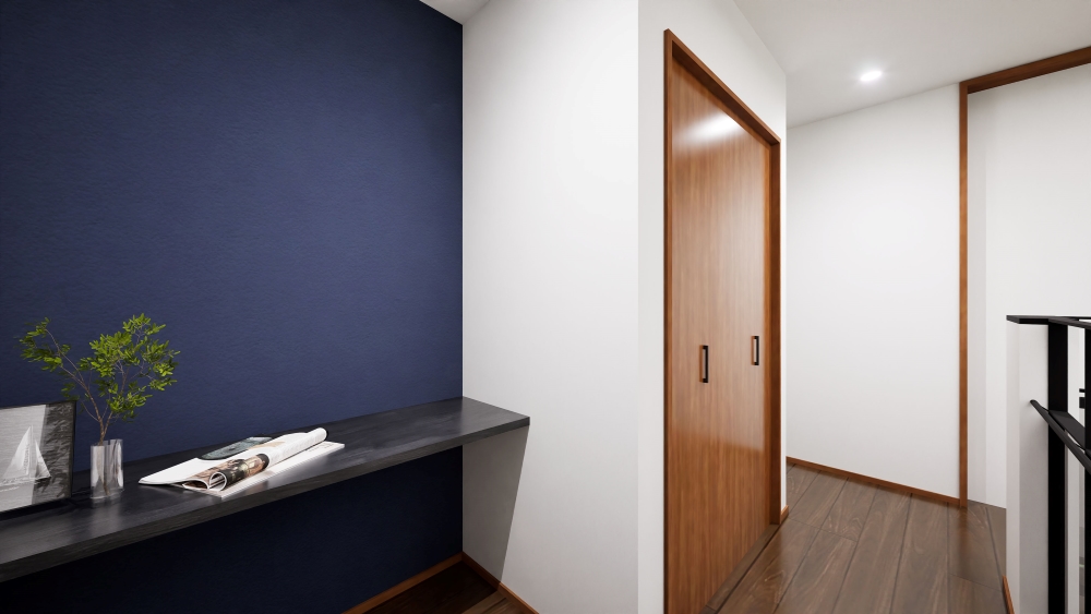 穏やかで暖かみのある、家族が自然と集まる空間。オープンな書斎スペースや大容量のファミリークローゼットなど、暮らしと家族が自然につながるお家です。