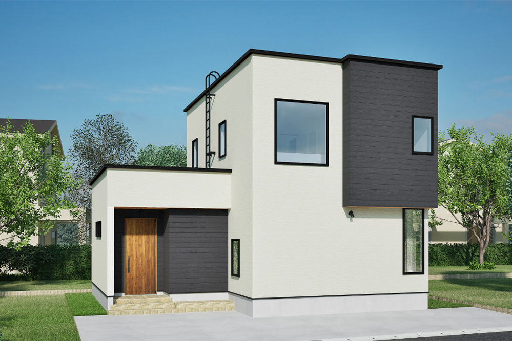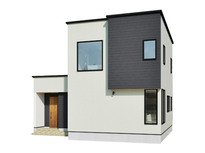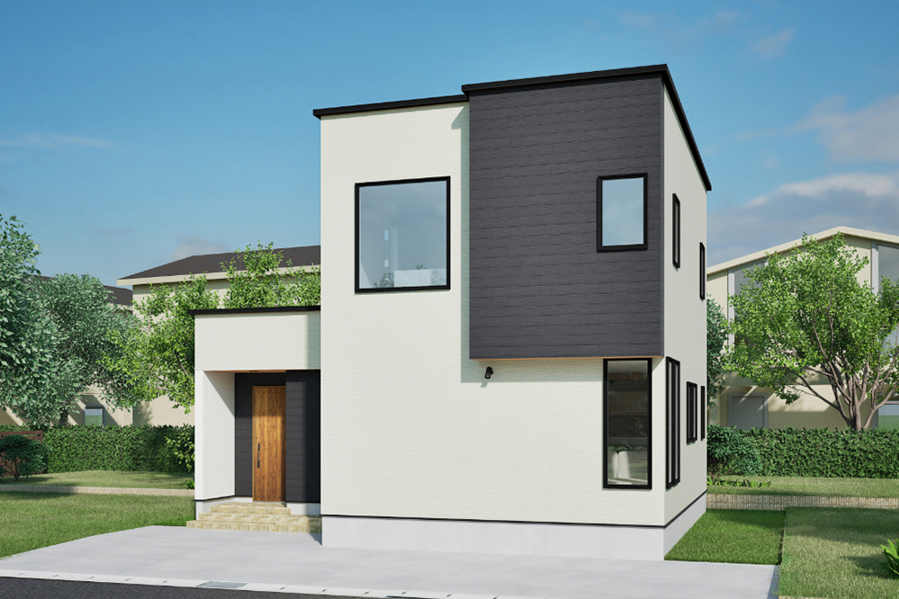 立体感のある外観は、光と影を生み出し洗練された印象に。リビング横の小上がりや2Fフリースペースなど、ライフステージに合わせて活用できる「スペース設計」が魅力のお家です。