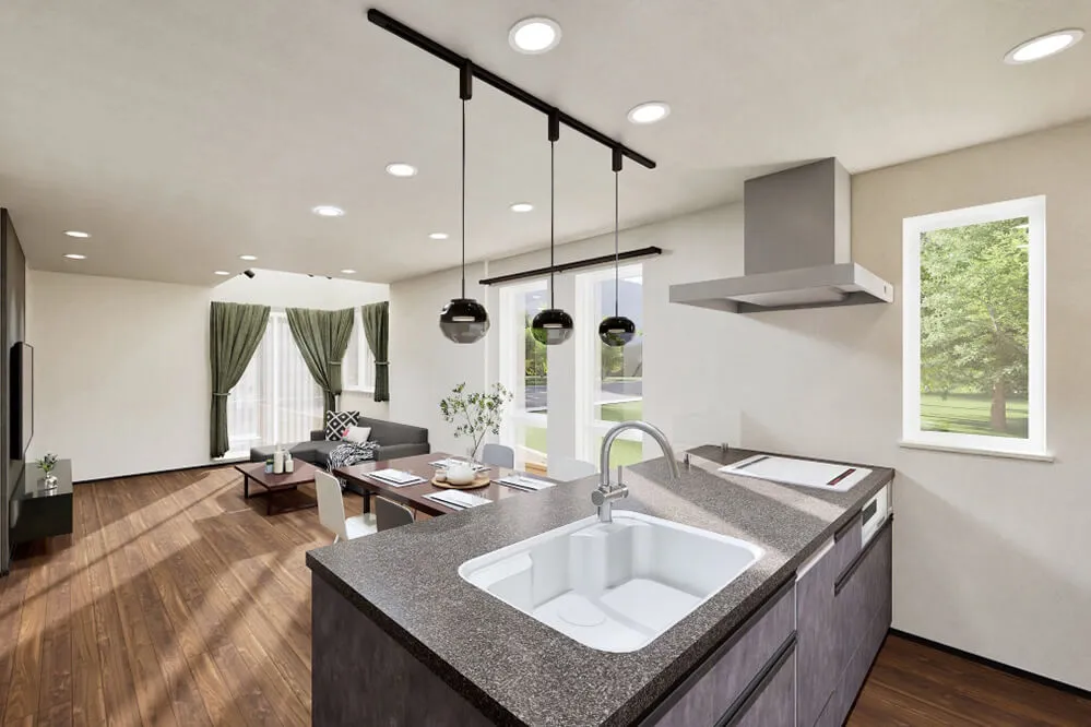 II型キッチンやバルコニーなどこだわりの詰まった、洗練かつシンプルモダンな家。