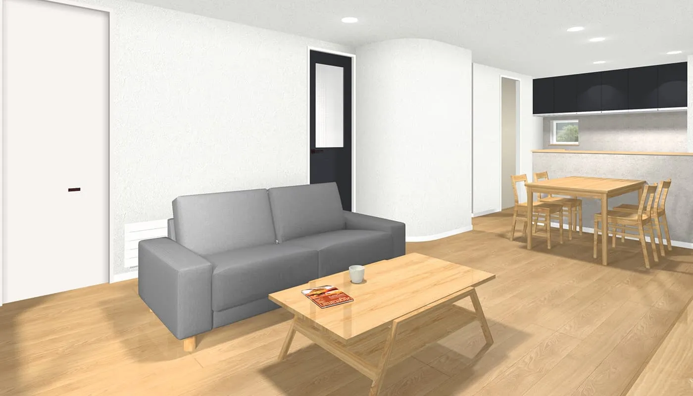 詳細を見てみる柔らかな木目×グレーで統一したインテリア。最大の特徴は、リビングと一体で楽しめる玄関土間です。大きな吹抜けがつくりだす心地よさを、ぜひご体感ください。