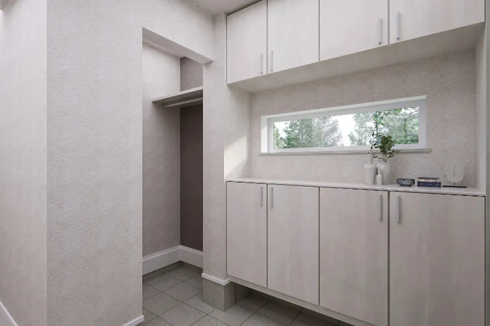 「片付く暮らしは、玄関から。」※設備仕様のイメージ写真です。実際の建物とは異なります。