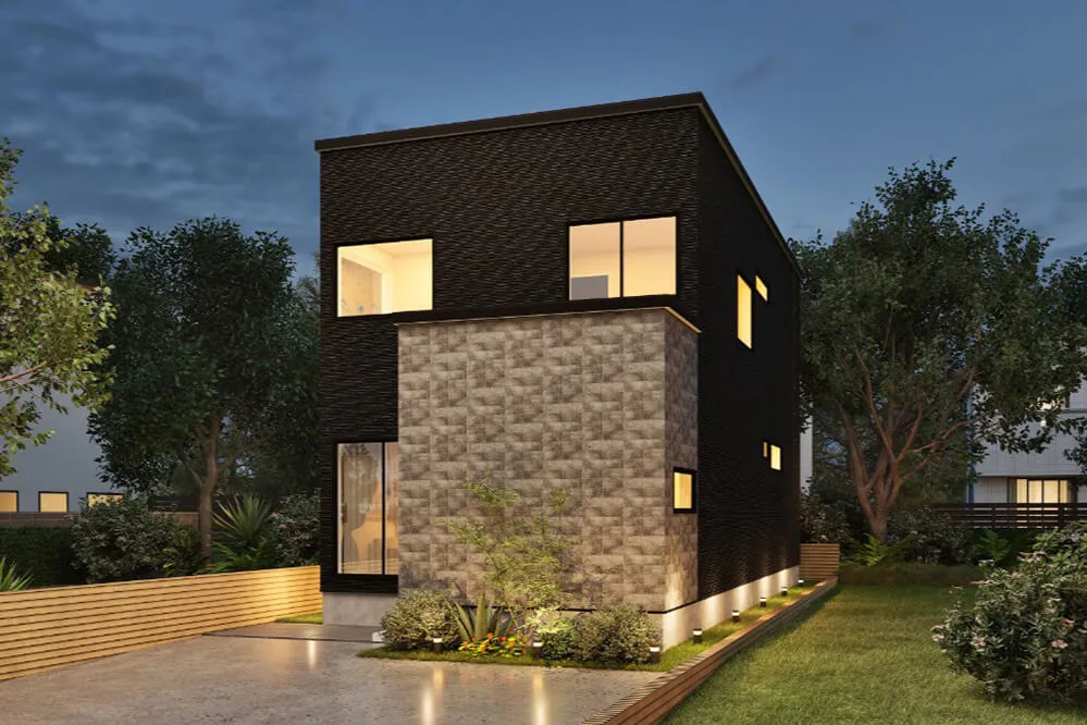 光あふれる吹き抜けが、開放感をもたらす住まい。リビング階段や対面キッチンを通して、家族のつながりを自然に感じられる間取りに仕上げました。寝室奥に広がる、こもり感のある隠れ家のような書斎も魅力です。ぜひご体感ください。
