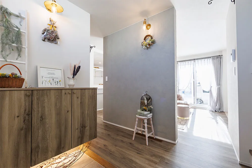 柔らかな温もりを感じるグレージュの家