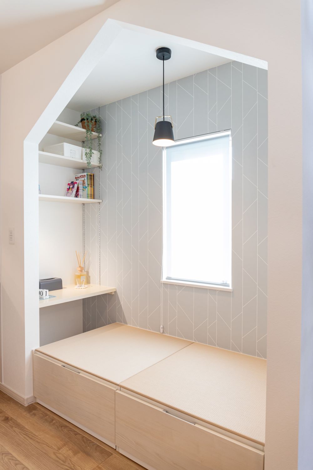 リビングに設けたヌックは、家族と一緒に過ごしながらも、自分だけの時間を楽しめるスペースです。読書やゲームなど、リラックスできる活動をしながらも、家族の存在を感じられる絶妙なバランスを実現。家族それぞれの趣味を楽しむことができます。
