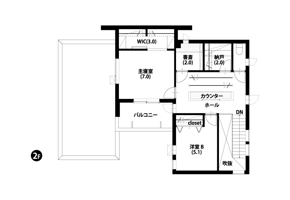 子世帯のリビングは、吹き抜けと鉄骨階段が生み出す開放感が魅力。広々とした空間で、家族全員が集まりやすく、自然と笑顔が生まれます。お子様の成長を見守りながら、のびのびとした時間を共有できる、家族の中心となる場所です。