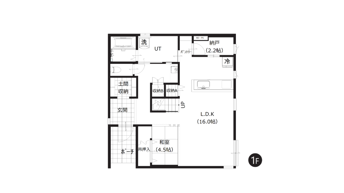 キッチンからリビングやユーティリティまで自由に回れる間取りで、毎日の家事をストレスフリーに。見渡しの良い対面キッチンと、さりげなく手元を隠す壁やカウンターで、家族との時間も快適に楽しめます。
