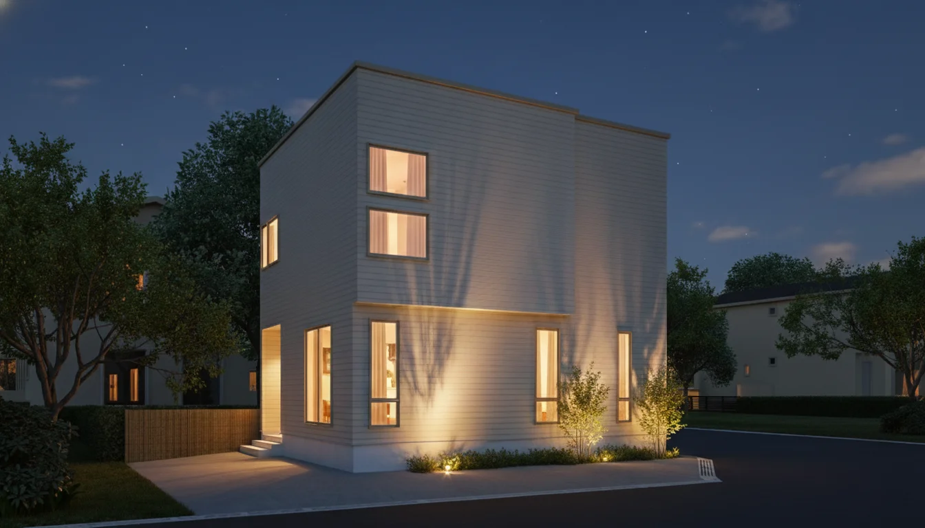 ダイニングキッチンを中心に家族が自然と集まり、会話が生まれる間取りに。木目のやさしい表情と落ち着いた色合いが、毎日の暮らしを穏やかに包み込みます。家族の時間を大切にした、都心型の住まいです。